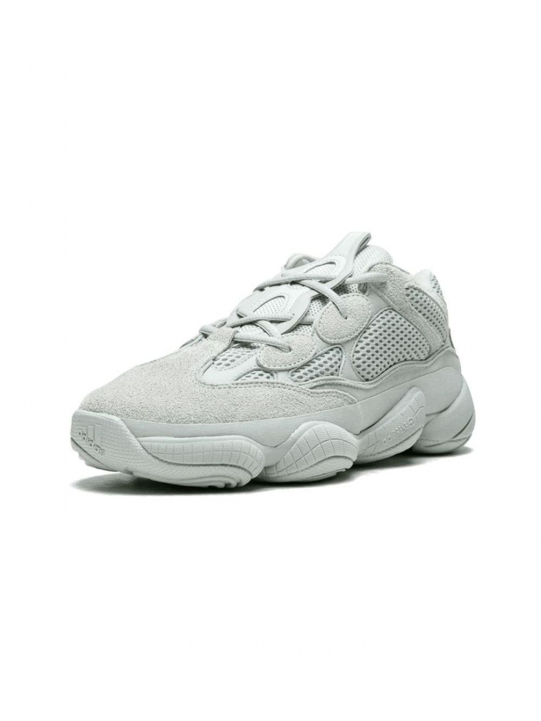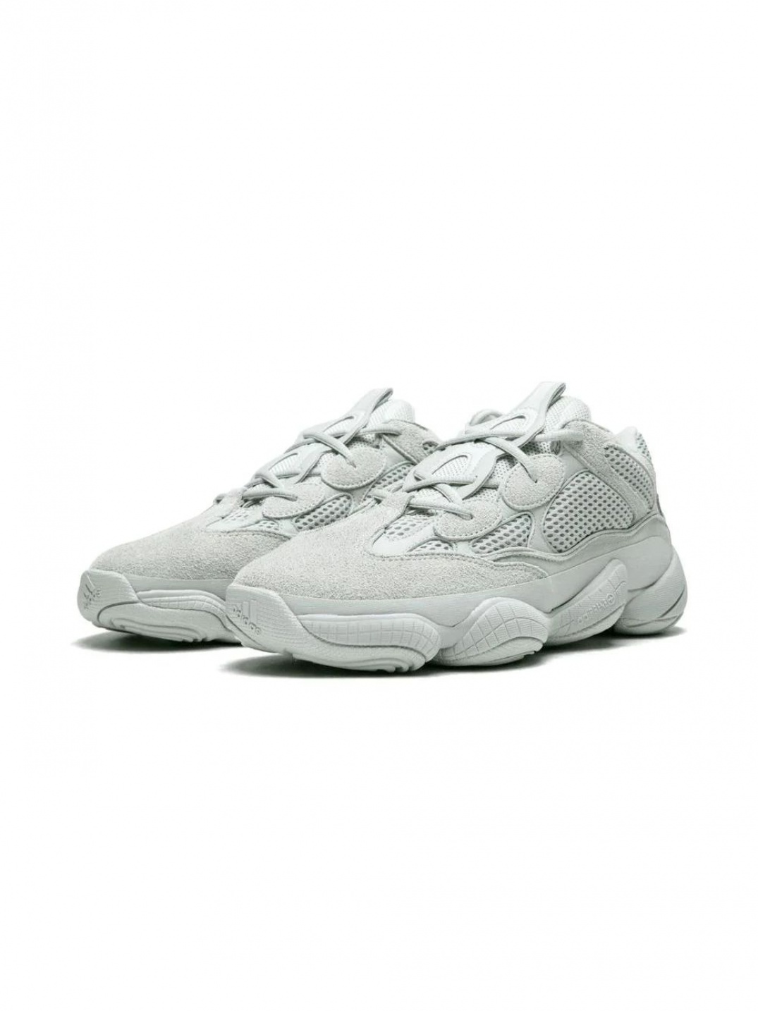 Adidas Yeezy 500 'Salt' были выпущены на рынок осенью 2018 года и представляют собой свежую расцветку Yeezy 500. Верхняя часть кроссовок Yeezy 500 'Salt' сшита из комбинации премиальной замши, сетки и кожи в бело-серых тонах. Дизайн модели Adidas Yeezy 'Salt' выполнен в гармоничном сочетании современных модных трендов с ретро-стилем. Midsole напоминает массивную подошву 'Feet You Wear', которая была популярна на винтажных кроссовках Adidas 90-х годов. Благодаря своей классической расцветке, Yeezy 500 'Salt' являются одной из самых популярных моделей не только среди линейки Yeezy, но и среди всех лимитированных кроссовок в мире.