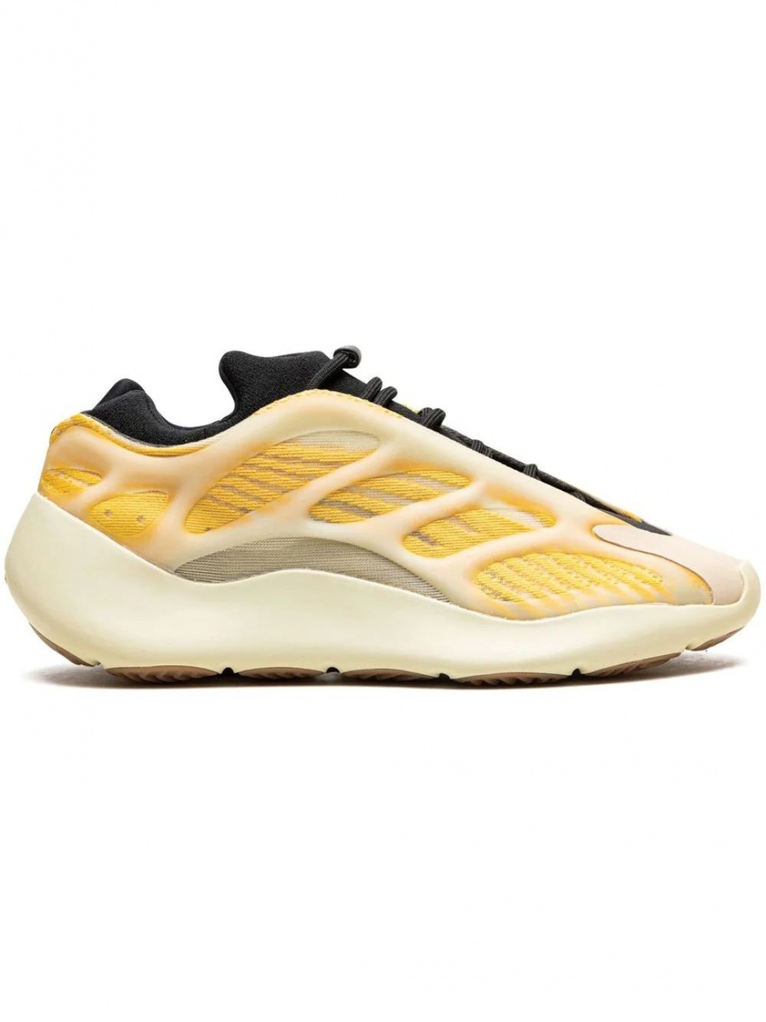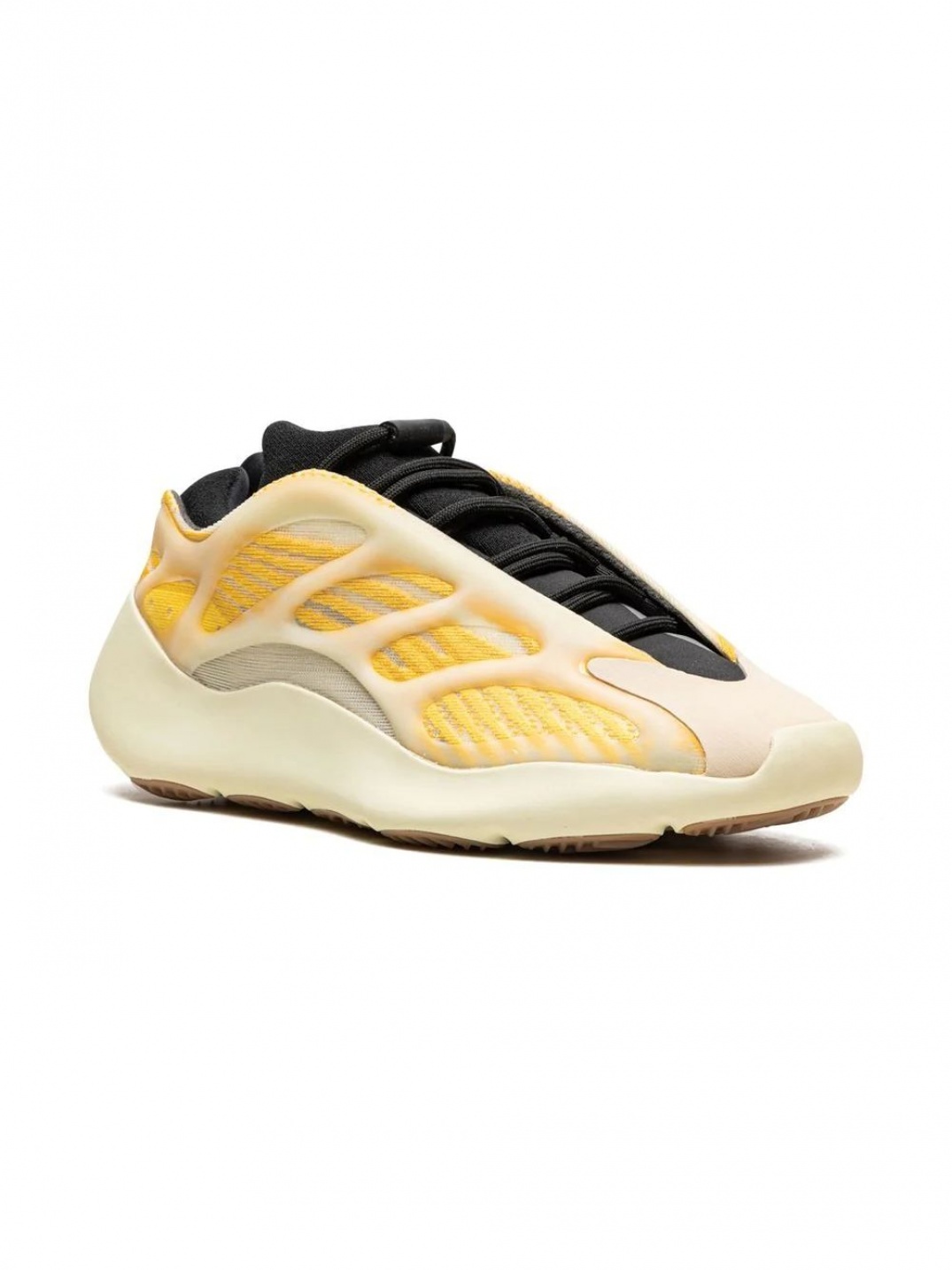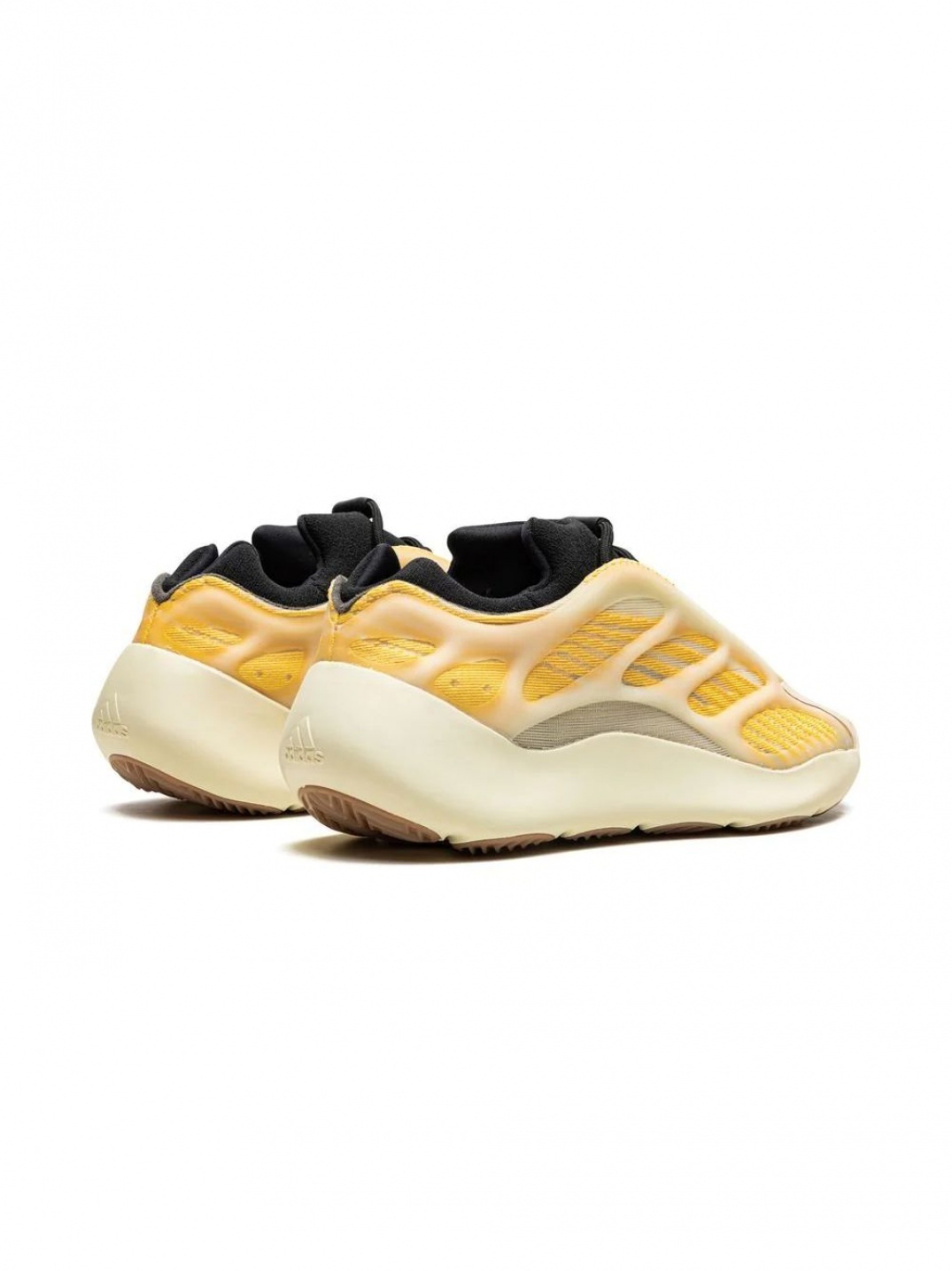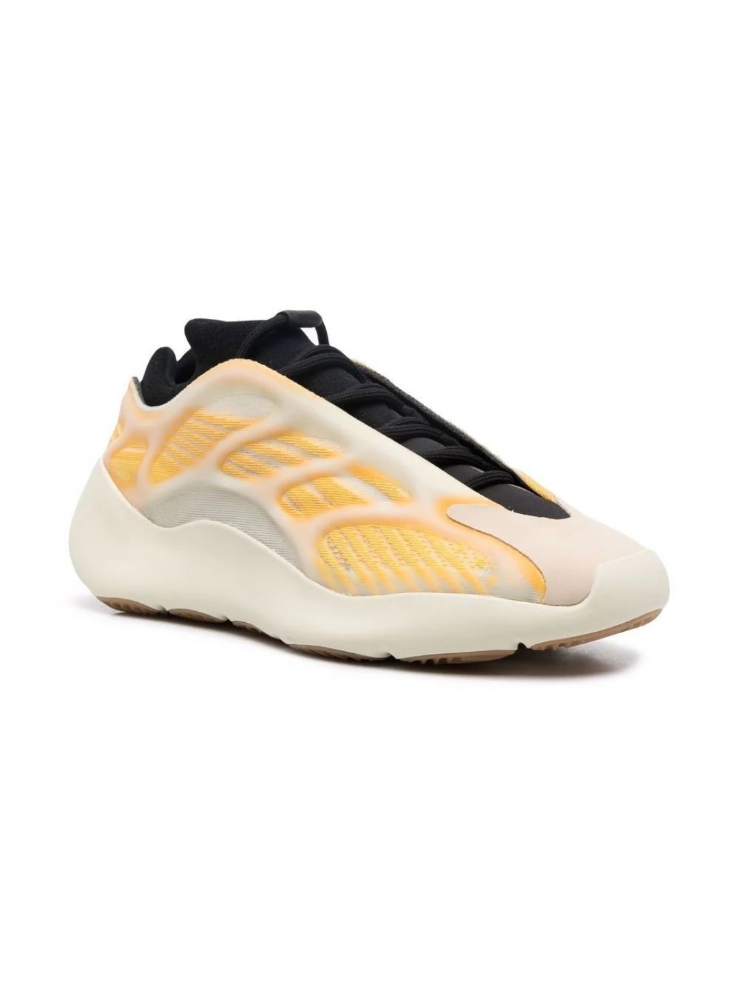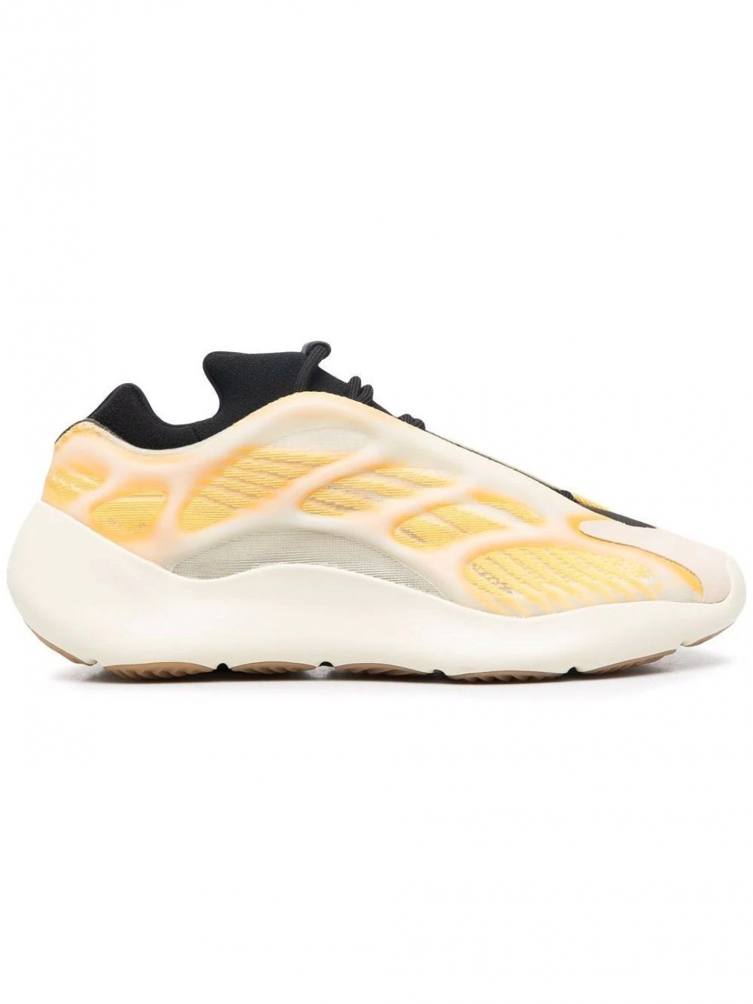 Adidas Yeezy 700 V3 'Safflower' четвертая и абсолютно эволюционная версия массивного силуэта семисотых сочетает в себе классическую эстетику баскетбольного стиля с современным образом жизни. Релиз осени 2020 года отличается от предшественников своим футуристичным дизайном и светящимися боковыми панелями в форме крыльев ангела. Четвертая расцветка V3 - Yeezy 700 V3 'Safflower' - исполнена в сетчатом материале с жесткими накладками. Черный нейлоновый язык спрятан под абсолютно новой системой шнуровки, петли которой спрятаны изнутри боковых панелей. Мощная кремовая подошва Yeezy 700 V3 'Safflower' почти в два раза больше, чем остальные модели Yeezy 700 и придает гораздо больше комфорта при ходьбе, притягивая взгляды окружающих. Важным отличием Yeezy 700 V3 'Safflower' от других моделей линейки 700-х является отсутствие классического материала Boost в основе подошвы. Adidas Yeezy 700 V3 'Safflower' оснащены стельками Ortholite с эффектом памяти.